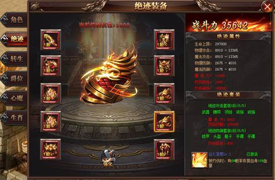 绝迹装备共10个部件,分为武器、衣服、头盔、项链、手镯、戒指、腰带、鞋子