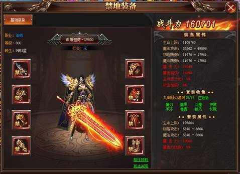 禁地装备共分为魔刃、魔甲、斗篷、护臂、手环、香囊、披风、长靴8个装备槽