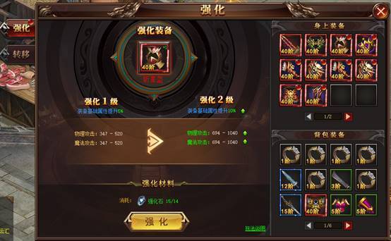 l 可通过强化、融合进行装备养成